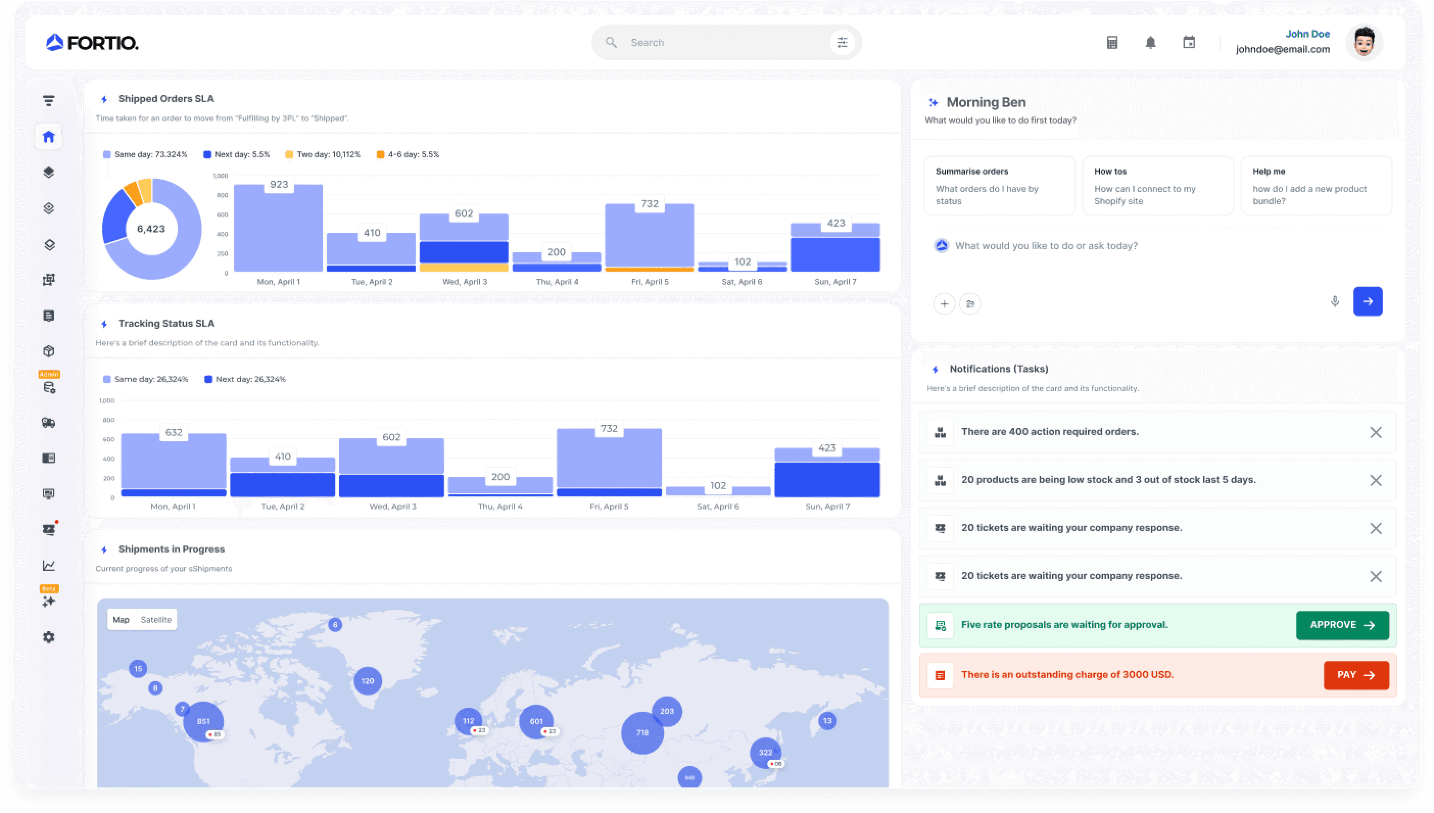 to global marketsFortio’s platform is designed around routes, handovers and delivery milestones, giving teams a view that matches how shipments actually move through the network.