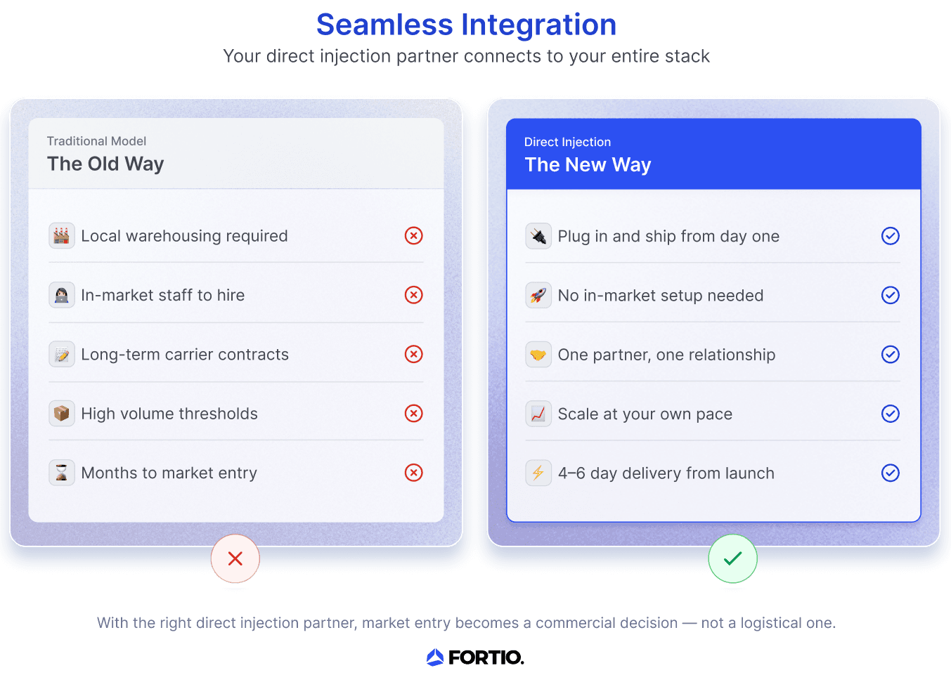 Learn how direct injection and owned infrastructure are removing the barriers to international expansion for growth-stage ecommerce brands.