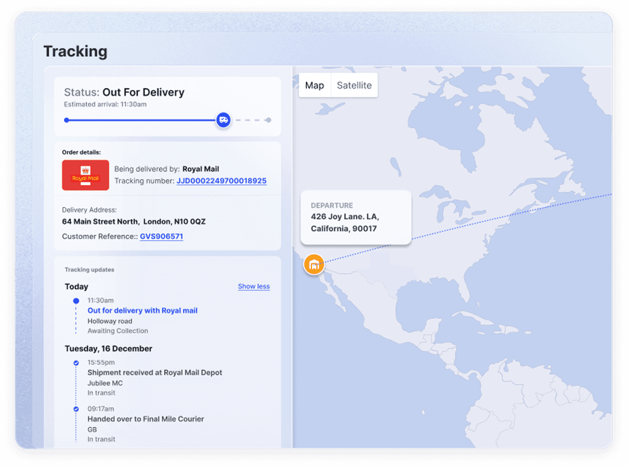 Track every shipment from US origin uplift to final-mile delivery, with consistent tracking events across all markets and carriers