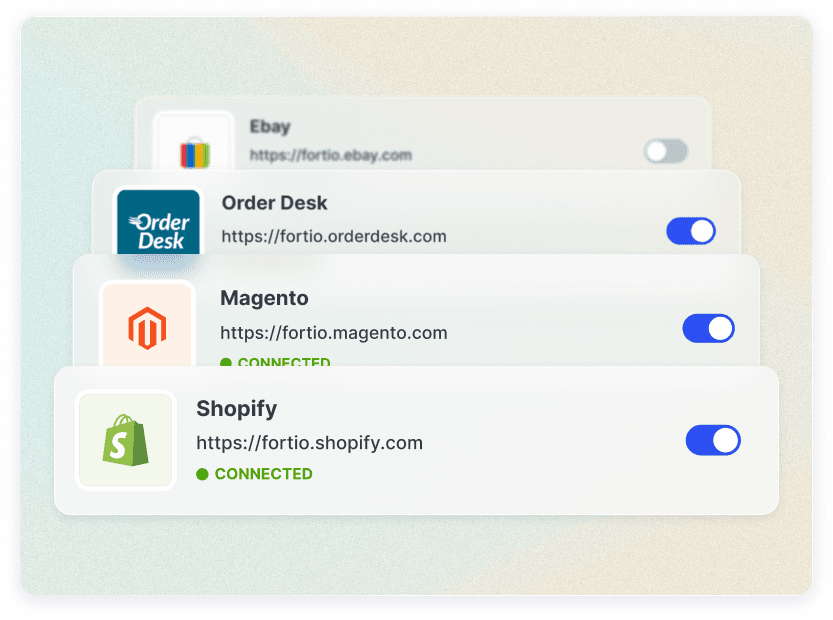 Sync orders automatically from your ecommerce platforms into Fortio, ensuring every shipment enters the direct injection workflow from the start.